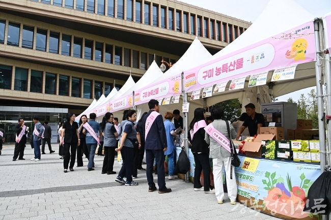 특히 구미 한우는 최대 33% 할인 판매가 이뤄져 뛰어난 품질과 합리적 가격으로 시민들의 관심을 모았다. 구미 쌀과 멜론, 우리 밀 가공품 역시 높은 인기를 끌며 수도권 시장에서의 가능성을 확인했다.