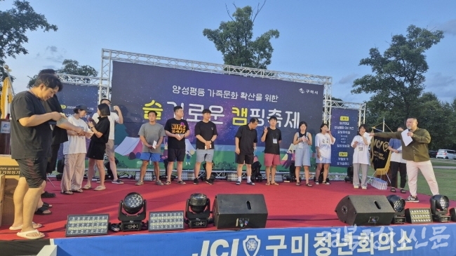 [경북정치신문=이세연 기자] 구미청년회의소(회장 이동은)가 지난 9월 6일부터 7일까지 구미 낙동강 체육공원 구미캠핑장에서 ‘슬기로운 캠핑축제’가 성황리 열렸다. 이날 행사에는 170가구 500여 명의 시민이 참여했다.