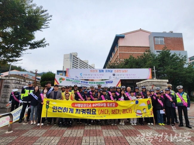 같은 날, 구미 원남초등학교 앞에서는 교통사고 예방을 위한 ‘서행운전 캠페인 서다, 보다, 걷다’가 진행됐다.