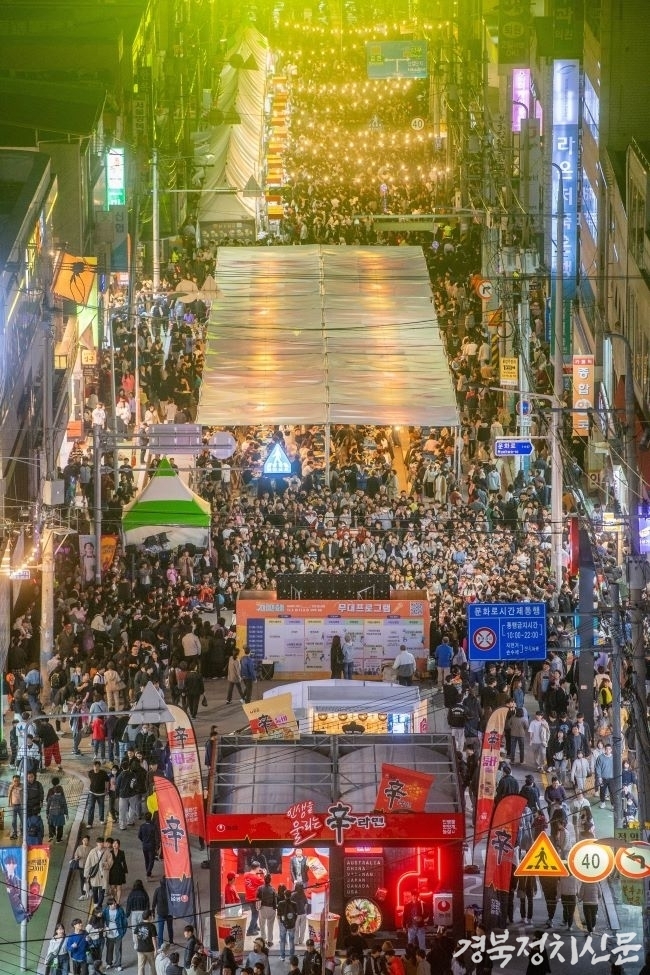 △라면축제 35만 명 △푸드페스티벌 20만 명 △낭만야시장 20만 3천 명 △벚꽃축제 15만 명 △힙합페스티벌 2만 명 △K-POP 콘서트 2만 명 △산단페스티벌 2만 1천 명 △문화로 페스티벌 3만 명 합산하면 100만 명을 넘어서는 규모다.