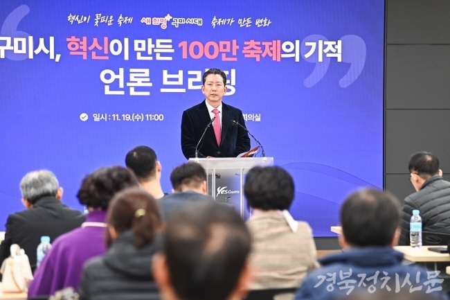 | 혁신이 만든 100만 축제의 기적, 언론 브리핑을하는 김장호 구미시장 |