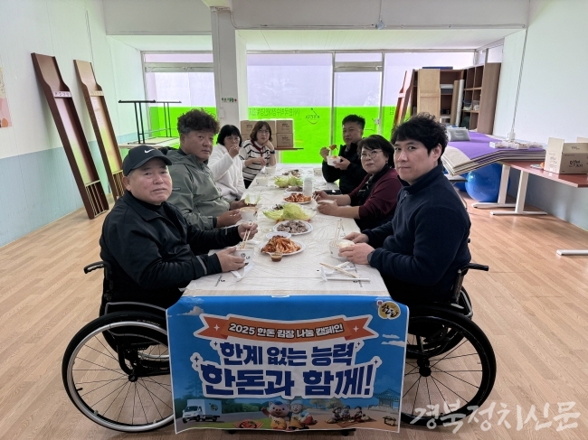 [경북정치신문=홍내석 기자] (사)한국척수장애인경북협회 구미시지회는 지난 21일 구미시지회 프로그램실에서 ‘2025 김장, 한계없는 능력 한돈과 함께’ 김장 나눔 행사를 개최하며 지역 내 척수장애인 가정에 따뜻한 겨울 밑반찬을 전달하는 시간을 가졌다.