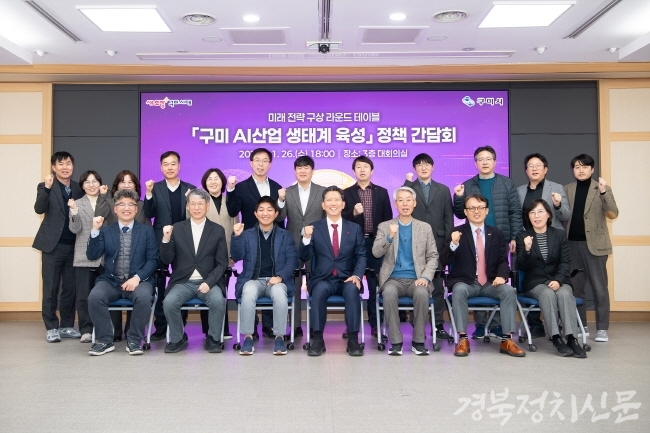 | 구미시는 26일 퇴근 시간을 훌쩍 넘긴 늦은 시간까지 시청 3층 대회의실에서 ‘구미 AI 산업 생태계 육성 정책 간담회’를 갖고 있다. |
