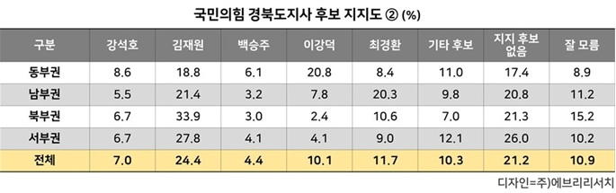 | 국민의힘 경북도지사 후보 지지도 |