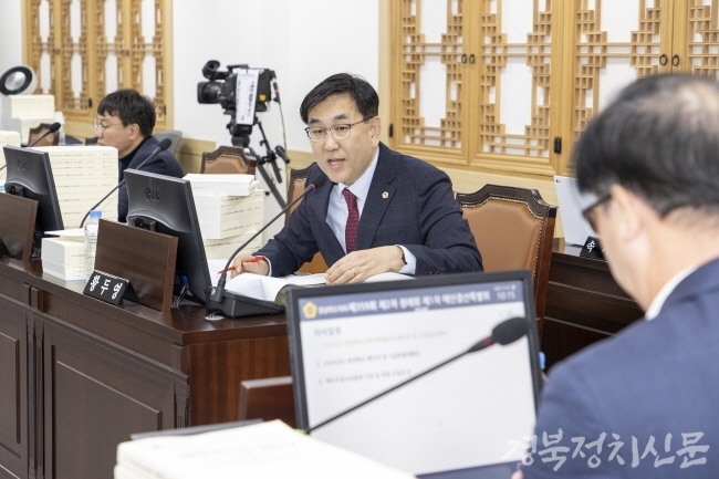 | 경상북도의회 황두영 의원은 경상북도지사가 제출한 ‘2026년도 경상북도 예산안 및 기금운용계획안’ 종합심사에 대해 질의를 하고 있다. |