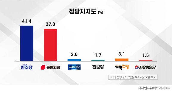 정당지지도, 민주당 41.4%, 국민의힘 37.8%