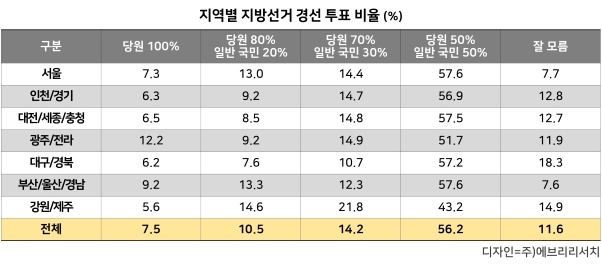 지역별·정당별 특징…광주·전라 ‘당원 100%’ 선호 상대적 높아