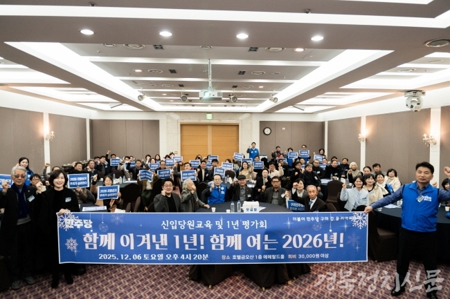 이번 행사는 비상계엄 정국과 대선 등 다사다난했던 한 해를 돌아보고, 지역 조직을 재정비하며 당원 간 결속을 다지는 취지로 마련됐다, 임미애 경북도당 위원장을 비롯해 지역 시의원 및 주요 인사들이 참석해 당원들의 단합된 의지를 확인했다.