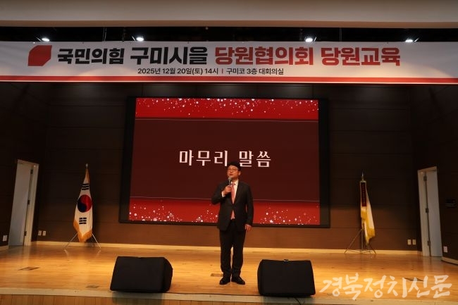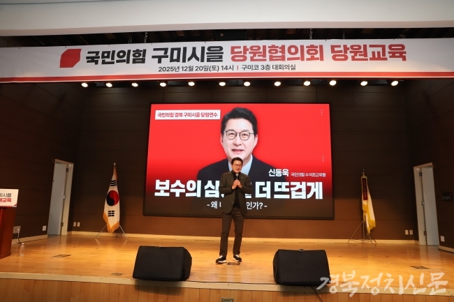 [경북정치신문=이관순 기자] 당 지지율 하락과 당내 혼선에도 불구하고 국민의힘 구미시(을)는 대규모 당원 연수를 성공적으로 치르며 보수 핵심 지지 기반을 재결집하고, 다가올 지방선거 승리를 향한 결속을 강화했다.