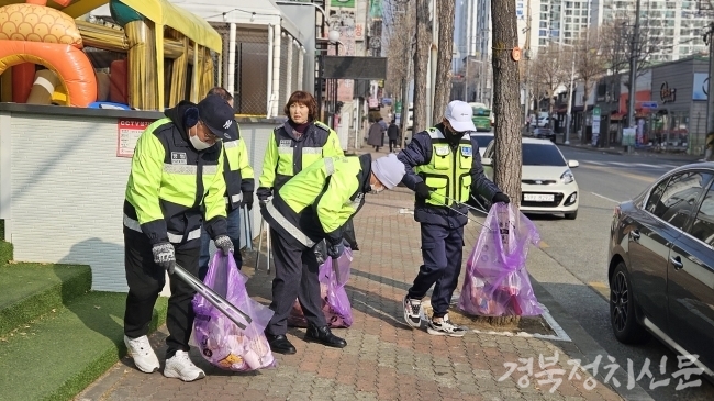 [경북정치신문=이세연 기자] 구미2 지율방범연합대 소속 상모자율방범대가 지난 18일 오전, 구미시 상모동 일대에서 지역 환경 개선과 범죄 예방을 위한 환경정화 활동을 실시했다.