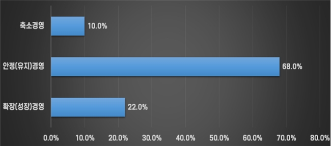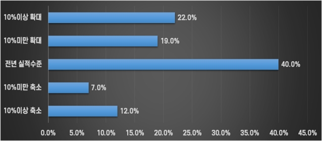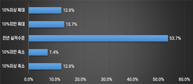 2026년 경영실적 목표치 설정에서도 이러한 분위기는 그대로 반영됐다. 내수 부분에서는 전년 대비 목표치를 확대 설정한 기업이 41.0%로 가장 많았지만, 40.0%는 전년 수준, 19.0%는 목표를 낮췄다.