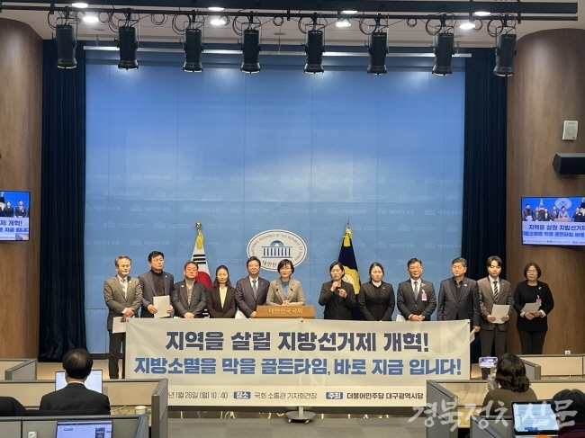 더불어민주당 경북도당과 대구시당은 지난 26일 국회 소통관에서 기자회견을 열고, 현재의 지방선거 제도가 지역의 다양한 목소리를 반영하지 못하고 있다고 지적했다. 수도권 집중이 심화하는 가운데, 대구, 경북을 포함한 비수도권은 인구 감소와 고령화, 지역 경제 침체가 동시에 진행되고 있지만, 이를 둘러싼 정책 경쟁과 정치적 토론은 실종됐다는 것이다.