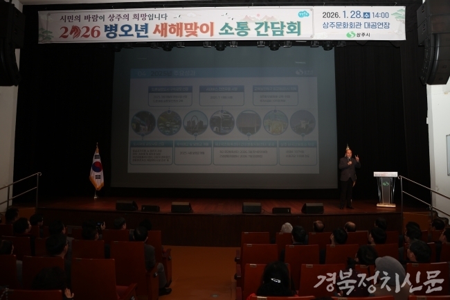 상주시는 지난 28일 상주시 문화회관 대공연장에서 2026년 새해맞이 동 지역 통합 간담회를 개최하고, 6개 동 지역 주민대표와 기관, 단체장 등 500여 명과 함께 시정 현안을 공유했다. 이날 간담회에는 강영석 상주시장이 직접 참석해 올해 주요 시정 방향과 추진 성과를 설명하고, 시민들의 의견을 듣는 시간을 가졌다.
