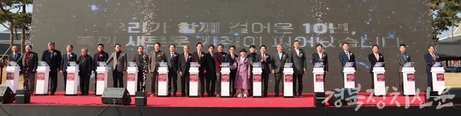 특히 행사장에는 ”함께한 10년의 동행, 더 큰 100년의 미래“라는 슬로건이 게시돼 신도청이 향후 100년 경북발전을 이끌 중심 역할을 하겠다는 의지를 상징적으로 보여줬다.