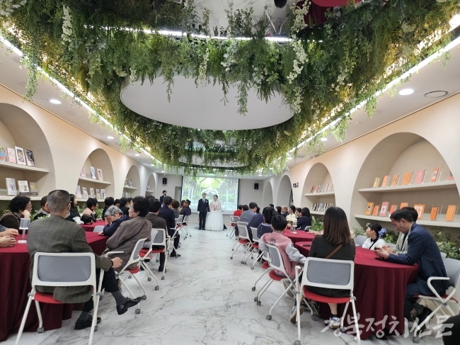 | 구미영스퀘어에서 첫 결혼식과 함께 청년 결혼 문화에 새로운 방향을 제시했다. |