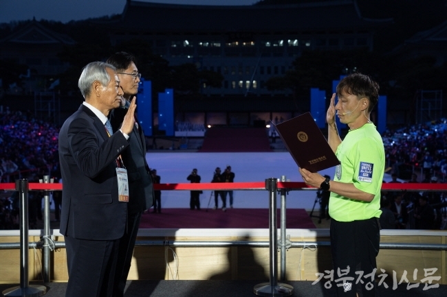[경북정치신문=이관순 기자] 경북 최대 체육 행사인 도민체육대회가 사상 첫 공동 개최라는 의미와 경북도청 이전 10주년 기념을 안고 화려하게 막을 올렸다. 그러나 개막식 도중 일부 내빈들이 자리를 떠나는 모습이 연출되면서 ‘도민 화합의 장’이라는 취지에 어긋난다는 지적도 함께 나오고 있다.