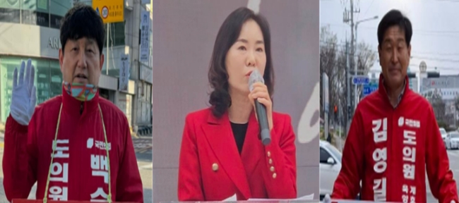 | (좌측부터)국민의힘 제8선거구 백순창, 임명해, 김영길 도의원 예비후보 |