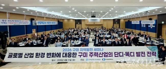 [경북정치신문=이관순 기자] 구미 산업이 중대한 갈림길에 섰다. 글로벌 공급망 불안과 AI 산업 전환 속에서 기존 제조 중심 구조만으로는 더 이상 경쟁력을 유지하기 어렵다는 분석이 나왔다. 이를 해결하기 위한 해법을 찾기 위해 경제 전문가들이 한자리에 모였다.
