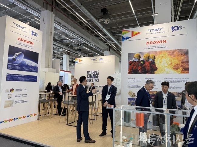 [경북정치신문=이관순 기자] 도레이첨단소재가 독일에서 열린 세계 최대 산업용 섬유 전시회에 참가해 고온, 경량 등 미래 산업에 필요한 핵심 소재를 공개했다. 전기차와 도심항공모빌리티(UAM) 시장 확대에 맞춰 관련 소재 공급을 강화하겠다는 전략이다.